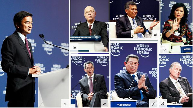 ๔. นายสุรินทร์ พิศสุวรรณ เลขาธิการอาเซียน ๕.นาย Susilo Bambang Yudhoyono ประธานาธิบดีอินโดนีเซีย ๖. นาง Karen Agustiawan ประธาน Pertamina (Persero) (รัฐวิสาหกิจน้ำมันและแก๊ส) ของอินโดนีเซีย และประธานร่วมการประชุม WEF on East Asia ๗. นาย Paul Polman ประธานบริษัท Unilever ของสหราชอาณาจักร และประธานร่วมการประชุม WEF on East Asia